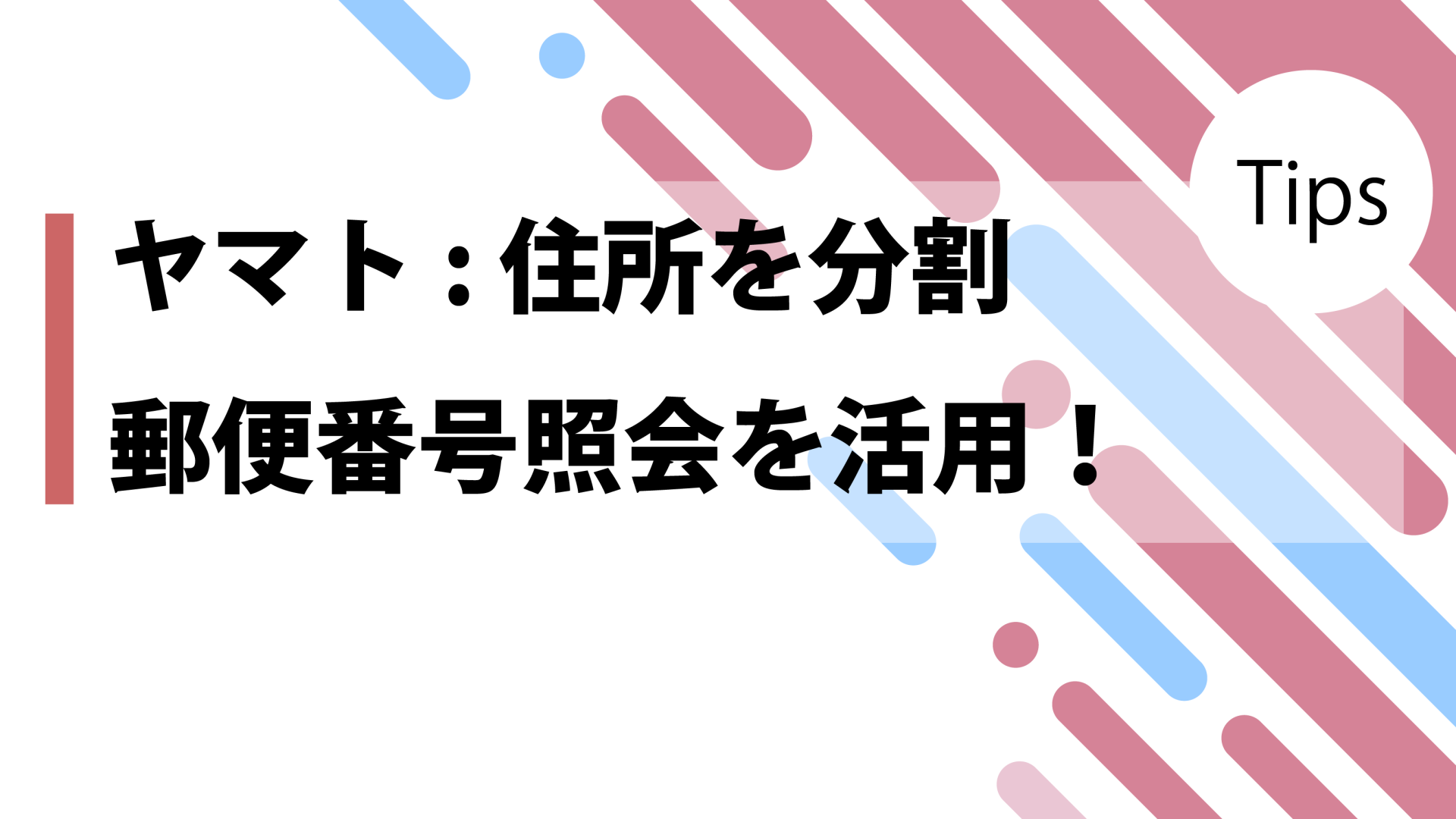速販Tips 【Tips.22】ヤマトB2クラウド:住所を分割・郵便番号照会を活用! 2023年9月12日 2024年6月6日 k-kimura いつもご利用ありがとうございます。速販サポートです。 今回はヤマトB2クラウドの住所を分割・郵便番号照会する設定についてご案内します。ご利用いただいていない方はこれを見ていただき活用してみてください! 住所を分割について […]